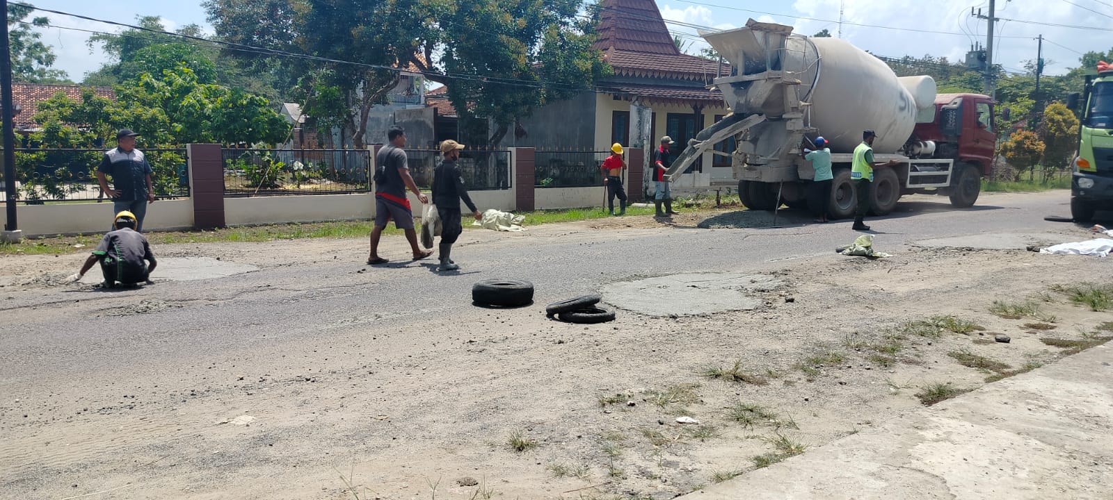 Kota Metro Lampung- Warga Masyarakat Purwoasri Bersatu melanjutkan kegiatan Gotong royong dengan melakukan tambal sulam jalan dr Sutomo yang berlubang dengan menggunakan Cor Beton lokasi kelurahan Purwoasri dan kelurahtan Purwosari Rabu, 13/12/2023.